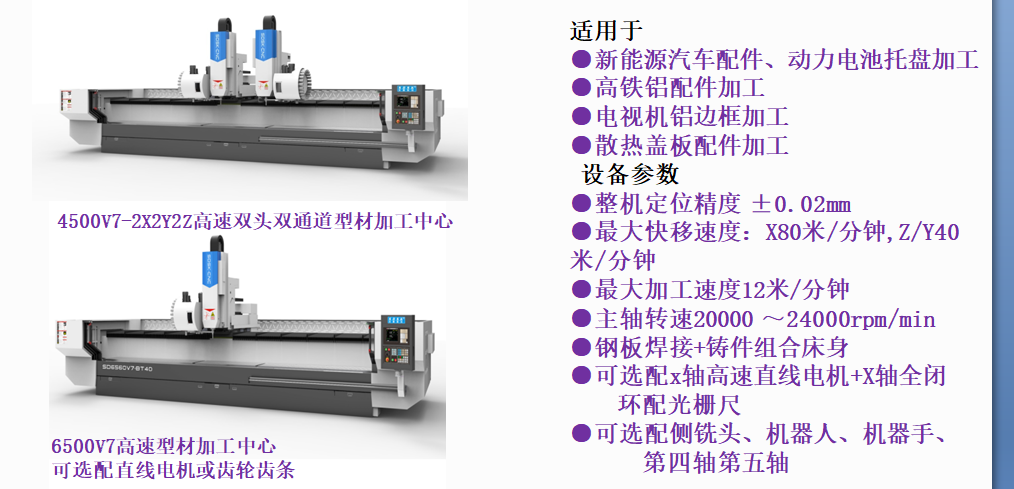 龍門加工中心對自動化設備大鋁板進行雕銑、鉆孔、攻牙、切削等加工