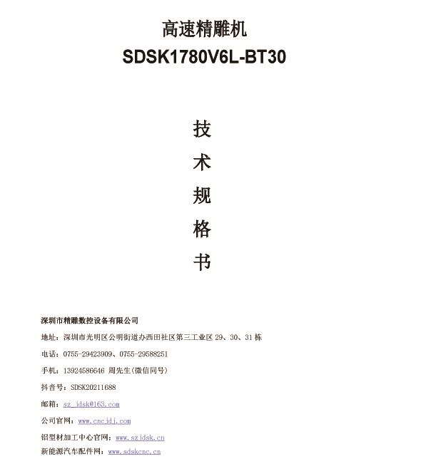 SDSK1780V6L-BT30 機(jī)型是專門為客戶量身定做的高速精雕機(jī)
