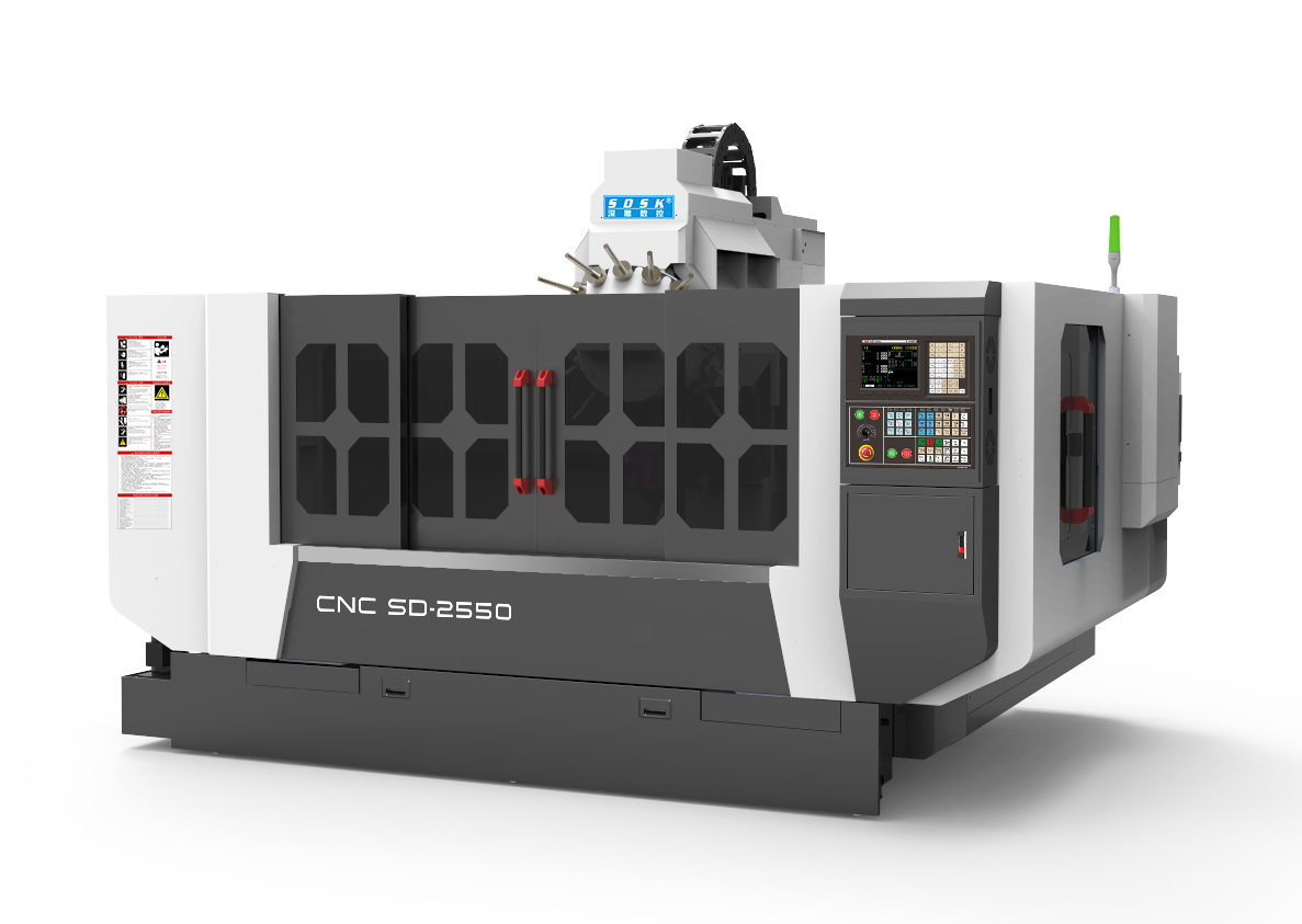 SD機型系列是專門為客戶量身定做的大型鋁型材加工中心; 配臺灣圣杰16位飛碟式刀庫,換刀速度為2秒,大大提高生產效率; 運動方式為Y軸工作臺前后移動,X軸機頭左右移動,Z軸主軸上下移動。 機身鑄鐵結構;采用深雕數控系統,伺服電機;三軸采用上銀/銀泰精密級直線導軌,精密級滾珠絲桿,德國聯軸器,先進的主軸制冷系統,自動潤滑系統,冷卻液循環噴水和噴霧系統,保證了更高的加工精度、速度與穩定性;;特別適用于各類鋼、銅、鋁、壓克力、塑料等零件的精密雕銑、擴孔、鉆孔、攻牙加工。